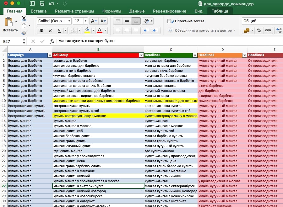Для глубокой проработки семантического ядра, выполнения настроек мы используем сервисы GoogleAdwords, Командер Директ (новый), KeyCollector.