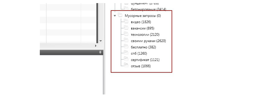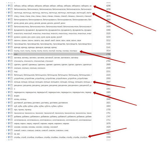 Обратили внимание на то, что фирма по сути продает бетономешалки, а мы собираем ключи по слову "бетон"? Может быть стоило конкретизировать направление, искать ключи для запроса "бетономешалка" и аналогичных услуг? Во втором пункте мы разберем этот вопрос подробнее. Но суть такова, что получая полное ядро по "бетону", мы легко выберем нужные ключи для конкретной тематики, что в идеале позволит заполучить и больше НЧ-трафика.