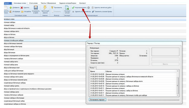 При настройке процедуры Нормализации лучше использовать Яндекс.XML прямо либо же через веб-сервис SeoZOO. После этого запускаем процесс.