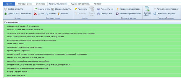 Начинаем с создания проекта в МегаЛемма и вставляем запросы. Возьмем подгруппу "Заборы", в рамках которой есть 3784 запроса и сделаем группировку для неё.