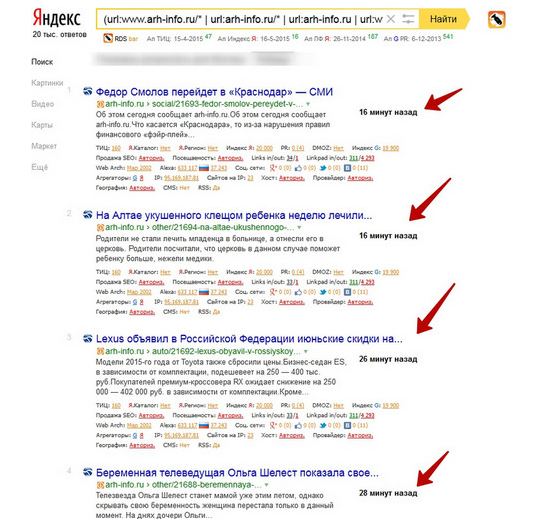 И смотрим выдачу по нему (можно для этих целей воспользоваться RDS-баром - так даже удобнее). Если дата публикации первых страниц свежее, чем последнее обновление Яндекса, то это первый признак того, что быстрые роботы поисковика посещают данный ресурс. Такой донорДонор - веб-ресурс, передающий статическую весомость другим сайтам. Донор воздействует на ранжирование и позиции продвигаемой площадки в…Перейти к словарю терминов - прекрасно подходит и, вероятно, поможет с ускоренным добавлением в индекс продвигаемого ресурса.