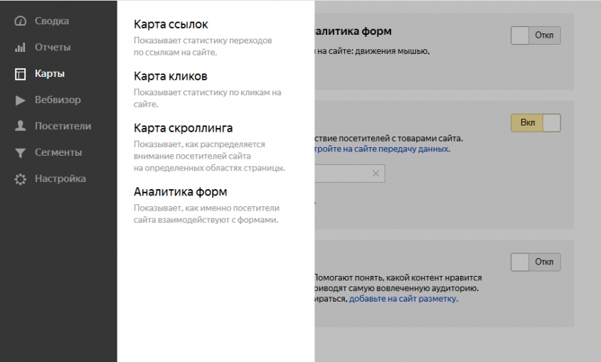 Внесенные изменения необходимо сохранить. Здесь есть несколько ситуаций: счетчикСчетчик - несложная программа, отображающая различные количественные параметры работы веб-ресурса. Для целевойЦелевой пользователь (или ЦА - целевая аудитория) - посетитель сайта, на которого рассчитан предлагаемый на нем контент. Целевыми также считаются те посетители,…Перейти к словарю терминов аудитории и посетителей предлагаемые значения…Перейти к словарю терминов на сайте установлен/нет. В первом случае придется обновить код на всех индексируемых страницах. Если счетчика еще нет, то следует действовать, как предлагается в соответствующей инструкции для вебмастеров. Возможно, вы еще ранее подключили вебвизорВЕбвизор - функция поискового сервиса Яндекс, которая дает возможность администраторам сайтов следить за действиями гостей вебсайта в режиме текущего…Перейти к словарю терминов и данные об этом факте отображаются действующим кодом счетчика. Тогда просто перейдите по вкладке «Карты».