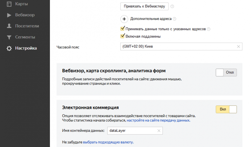 Чтобы разговор о Картах стал предметнее стоит зайти в рабочий аккаунт Яндекс.Метрики и продолжать рассмотрение функционала раздела на практике. Дальнейшее описание будет полезно для тех, кто еще не подключал вебвизор на сайте или допустил ошибки при настройке параметров. Также отметим тот факт, что с момента подключения и получения первых данных может пройти несколько дней. Поэтому изначально вы можете получить страницу с записью «нет данных».