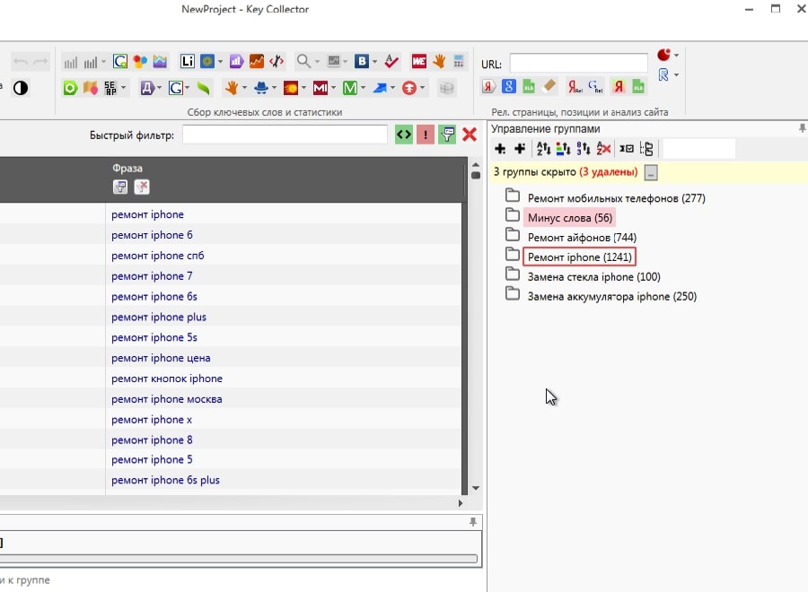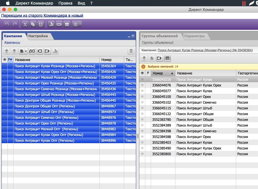 Для глубокой проработки семантического ядра, выполнения настроек мы используем сервисы GoogleAdwords, Командер Директ (новый), KeyCollector.